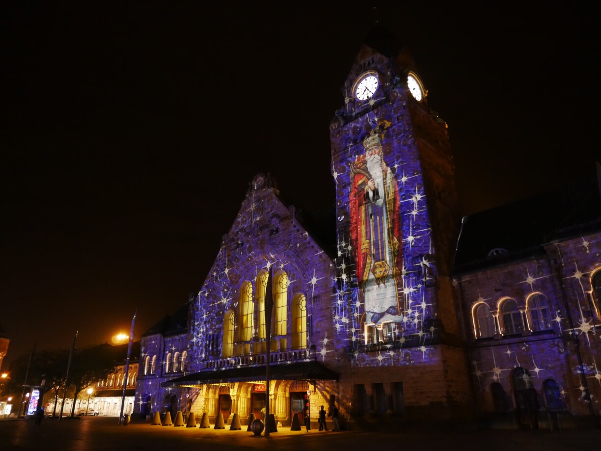 Impossible le week-end passé de ne pas apercevoir le Saint-Nicolas monumental, sur fond leu étoilé, projeté sur la tour de l’horloge de la gare de Metz, consacrée comme la plus belle de France par les internautes en 2018. Une projection originale de plusieurs motifs de Noël imaginés par le Kolektif Alambik.