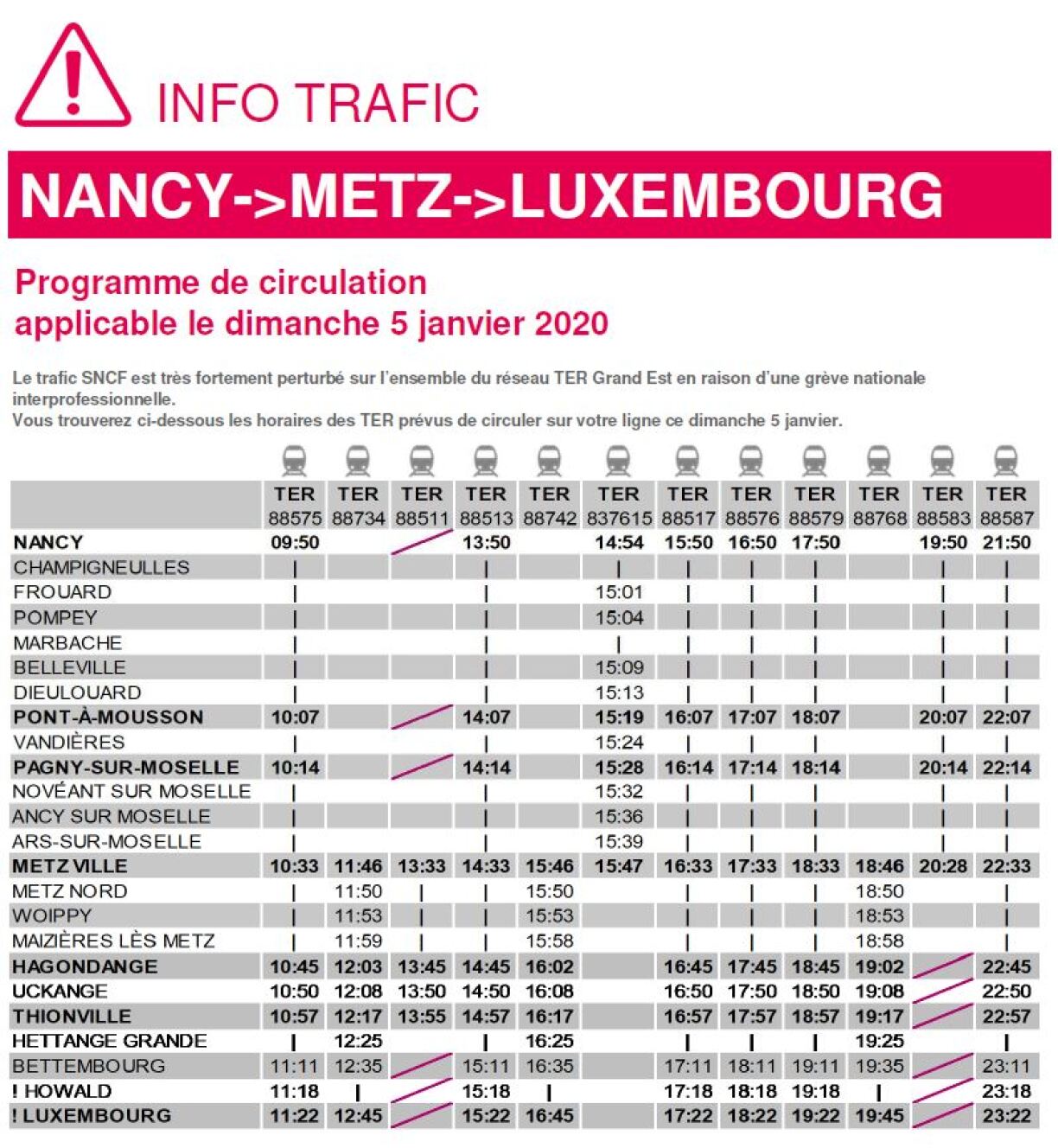 Autres lignes : Aucun autre TER ne circulera sur les autres lignes du territoire Lorrain.