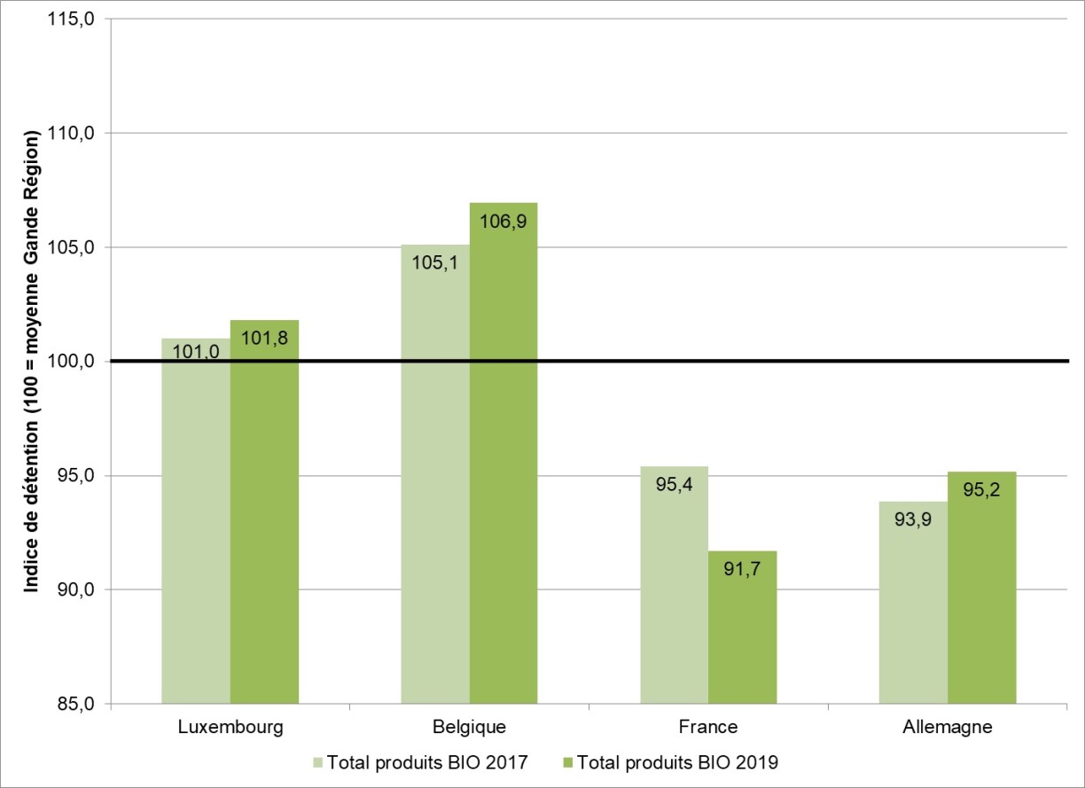 Avec un indice de 101,8 le Luxembourg est plus cher pour ces produits par rapport à la moyenne de la Grande Région. Il n’y a qu’en France que les prix de ces produits ont baissé.