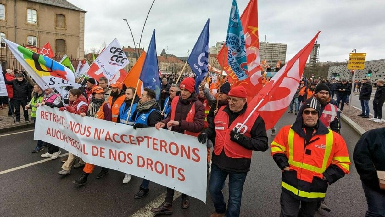 Plusieurs manifestations ont eu lieu en Moselle, elles ont par exemple rassemblé 850 personnes à Sarreguemines, 700 à Sarrebourg ou encore 500 à Longeville-lès-Saint-Avold, ce qui explique sans doute un nombre revu à la baisse du côté de Metz, par rapport aux précédents jours de grève.