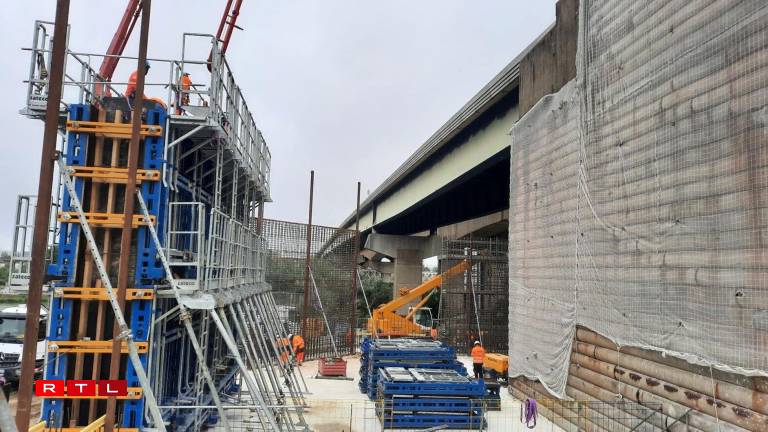 Le chantier est arrivé à mi-course et “on a fini les fondations” assure M. Collin. Tout autour de la culée malade a été coulée une dalle de 10 mètres de large et 1,40 m d’épaisseur qui repose sur 148 pieux d’une vingtaine de mètres de profondeur.