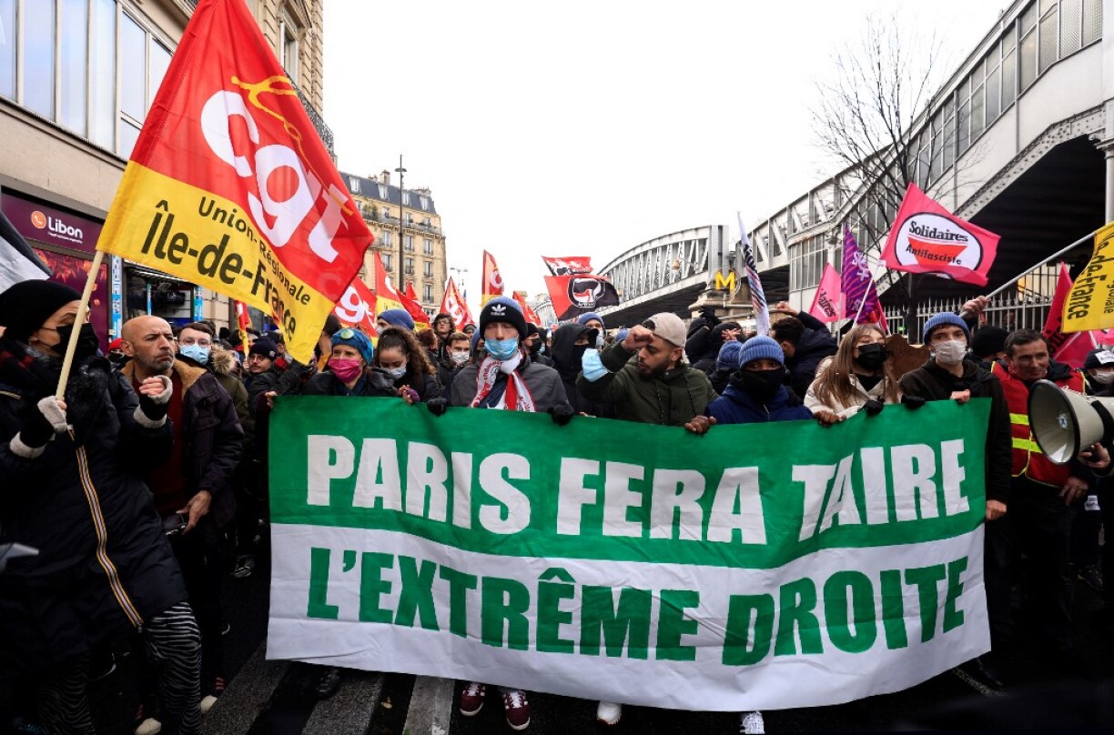 Quelque 2.200 manifestants, selon la préfecture de police, ont défilé dans les rues de Paris dimanche pour dénoncer la candidature à l’élection présidentielle et le discours à leurs yeux “raciste” du polémiste d’extrême droite Eric Zemmour, à l’appel d’une cinquantaine de syndicats, partis et associations.