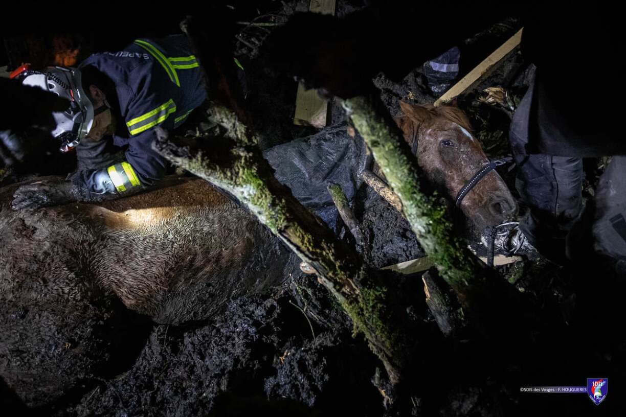 Une quinzaine de pompiers, des spécialistes de déblaiement et une équipe spécialisée en risque animalier ont été mobilisés dans la commune de Frenelle-la-Petite où un cheval a été retrouvé, embourbé jusqu’au garrot.