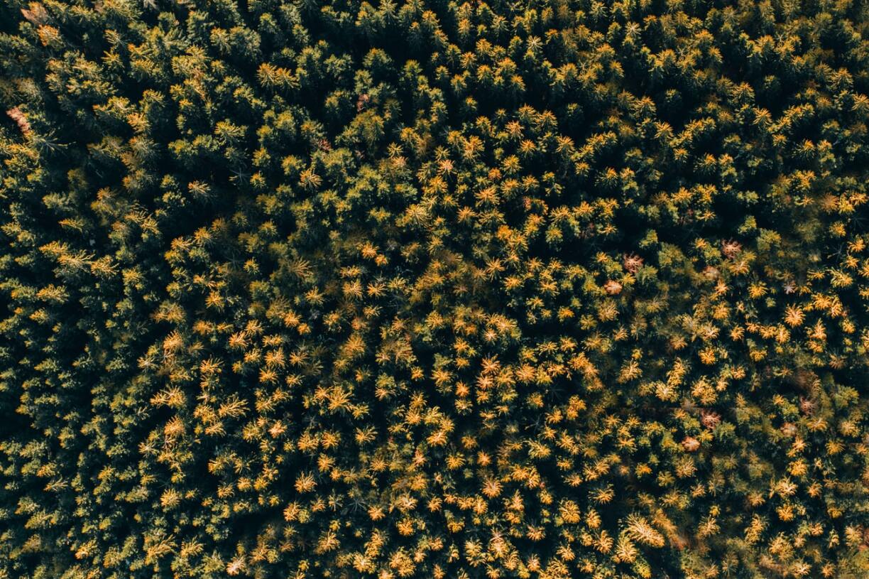La forêt verdoyante est constellée de taches rougeâtres ou grisâtres: des arbres en train de mourir ou morts.