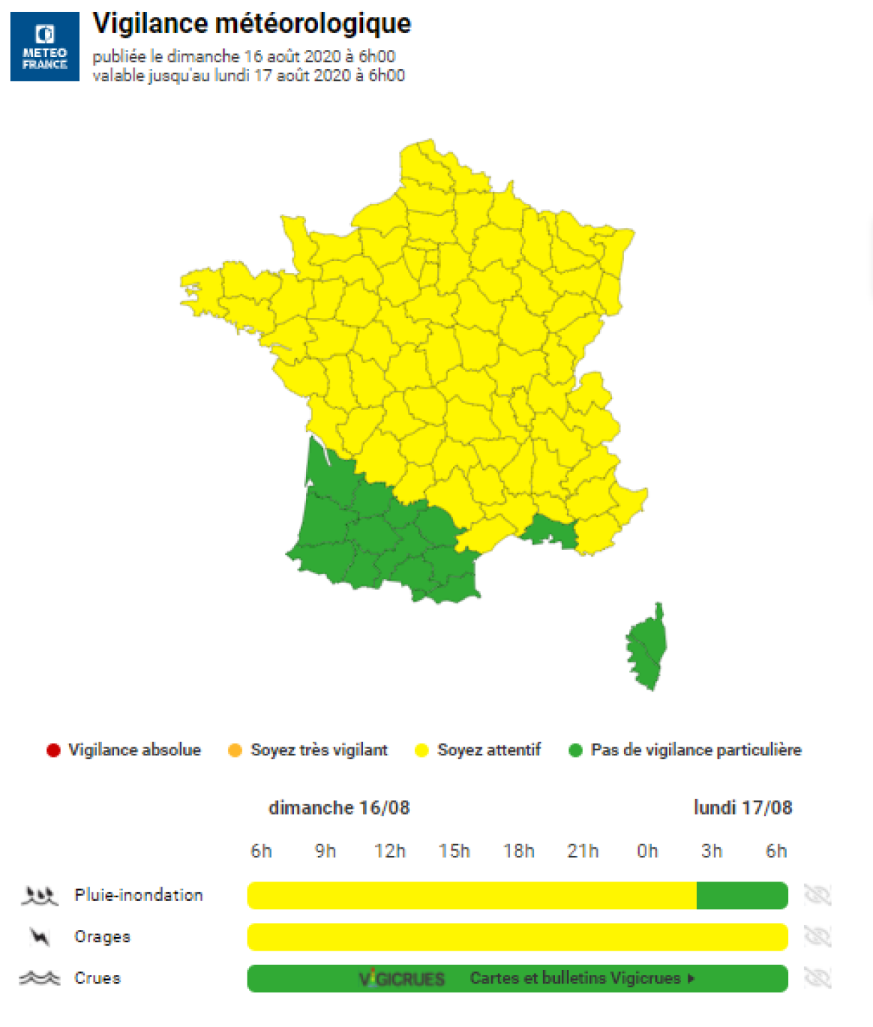 Il faudra donc être attentif à ne pas laisser d’objets légers sur votre terrasse ou dans votre jardin. Pour ceux qui aiment les balades en forêt, il faudra évidemment s’abstenir jusqu’à ce que l’alerte soit levée (lundi 6h). Il s’agit ici d’une alerte jaune, il faudra donc simplement rester vigilant si vous prenez la route.