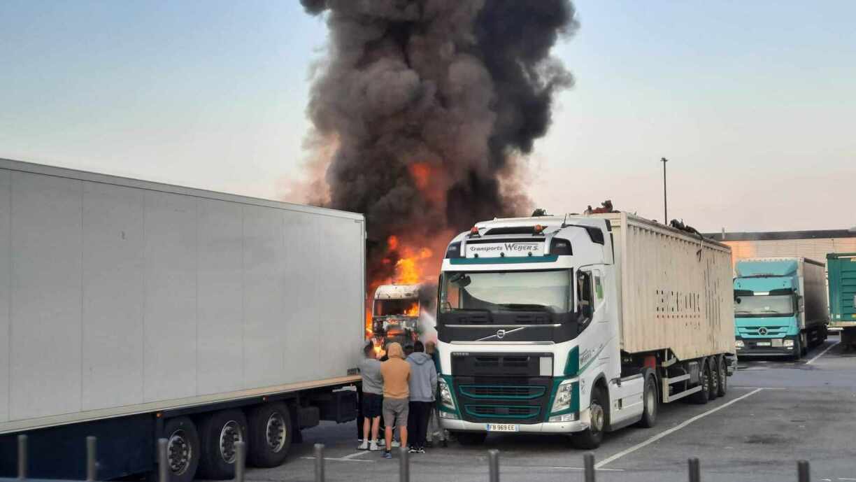 Sur le gigantesque parking du centre routier La Maxe situé en plein coeur de la zone industrielle de Metz-Deux Fontaine, à 500 mètres de la bretelle autoroutière de l’A31, trois camions se sont embrasés et sont complètement partis en fumée.