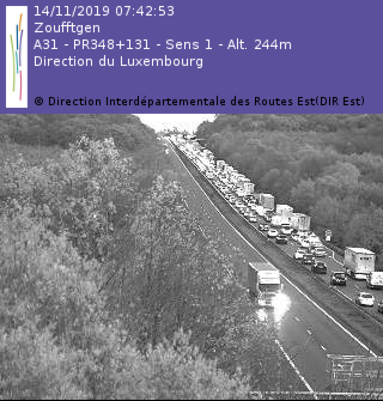 A 7h, on comptait pas loin de 15 km de bouchons, de Thionville à la frontière, soit un retard d’environ 45 minutes.
