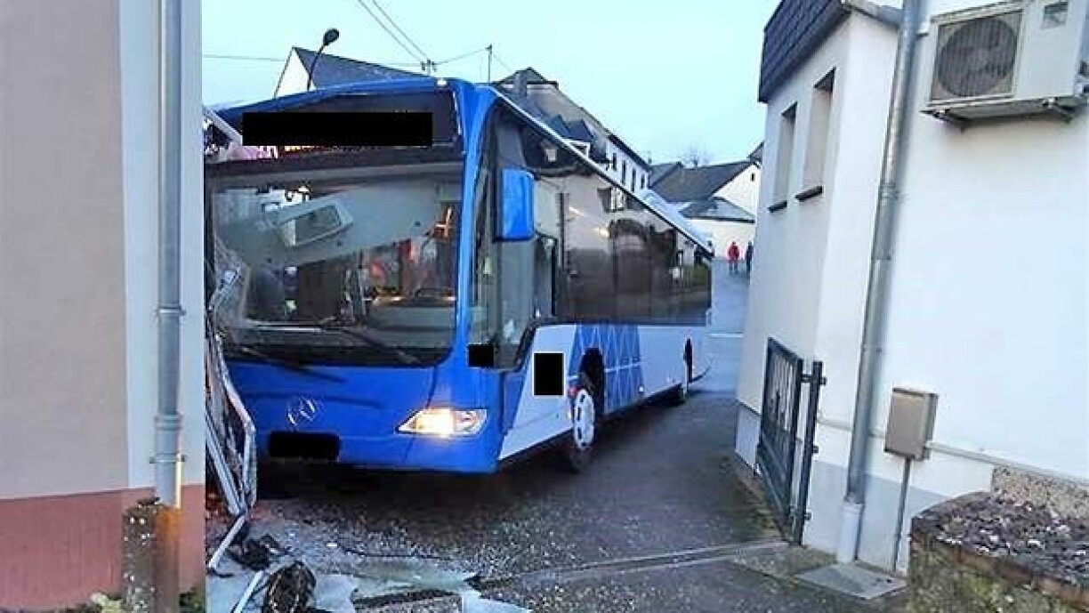 Le bus, heureusement vide au moment de l’accident, se dirigeait vers la route principale en direction de la localité d’Irrhausen.