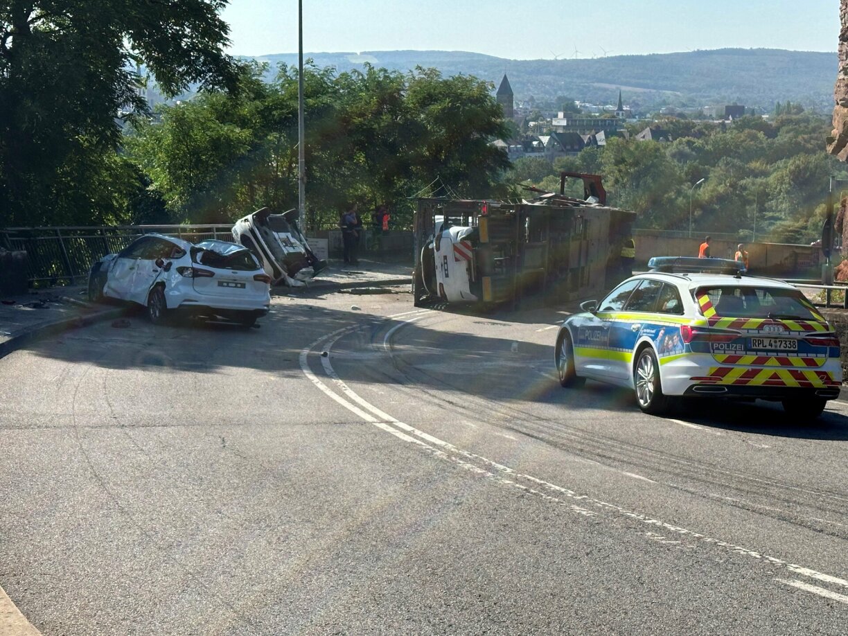 Des voitures cabossées, renversées... et un camion sur le flanc. Ce sont les impressionnantes images qui nous viennent de Trèves ce matin.