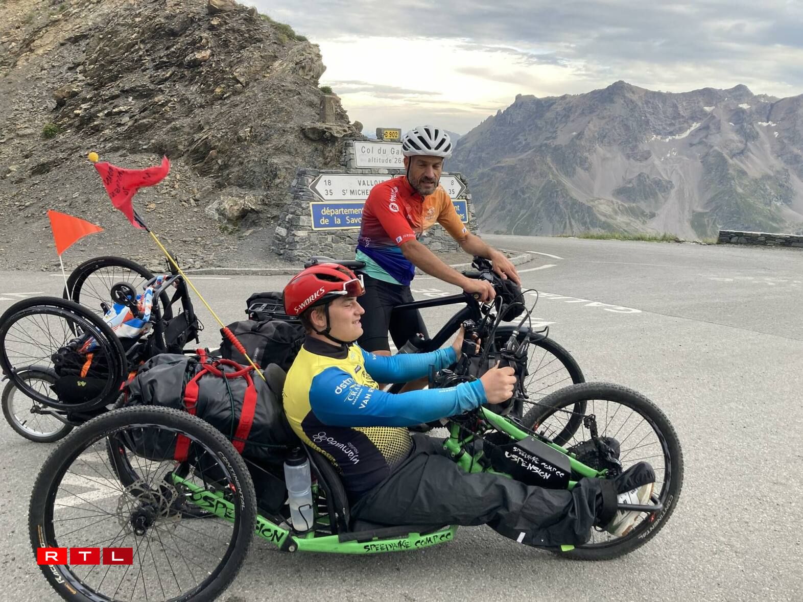 Voilà qui donne déjà un aperçu de la difficulté de la tâche sur cette drôle de machine mue par la force des bras et un système de batterie. Et pour corser le tout, Adan et Pascal se sont offert quelques cols de légende (Galibier, Télégraphe) sur le parcours. “Je trouvais ça idiot de passer à proximité sans en gravir l’un ou l’autre.” Le jeune homme n’ira pas jusqu’à dire qu’il regrette, mais s’il avait pu en zapper un, il ne se serait pas privé. “Au sommet du Col de la Cayolle, quand j’ai pris conscience qu’il y en avait un de plus dans la foulée, j’ai soupiré. Ce jour-là, on est arrivé bien tard à notre point de chute.”