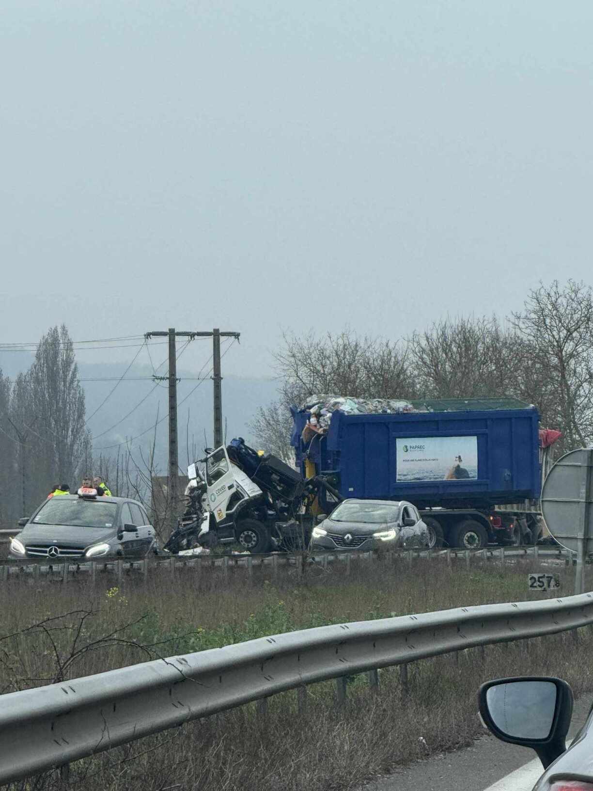 Bison Futé rapporte que la voie de droite et celle d’arrêt d’urgence sont fermées. L’accident provoque d’importants bouchons dans les deux sens.