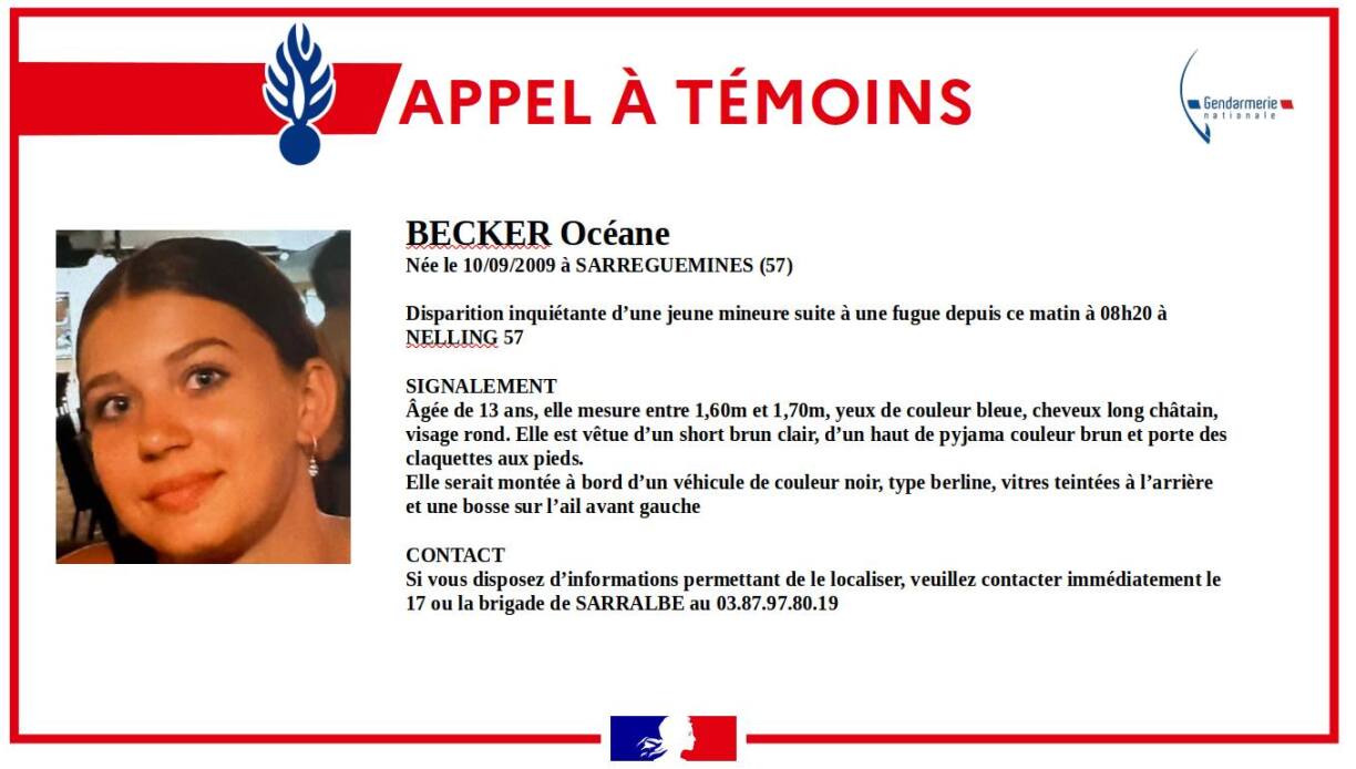 Pouvez-vous aider la gendarmerie à retrouver Océane Becker? Cette jeune fille de 13 ans est portée disparue depuis hier matin.