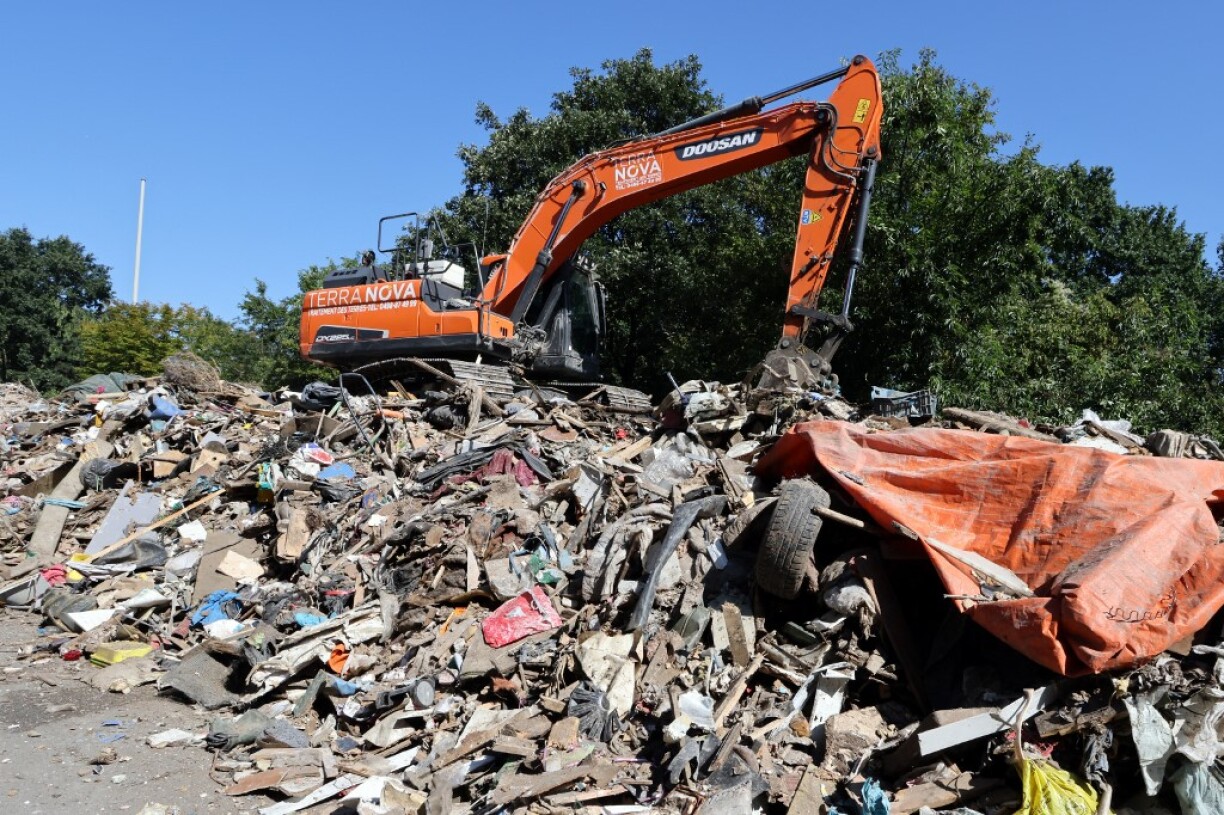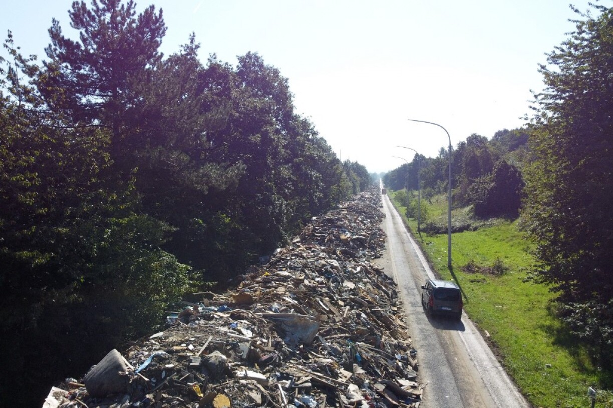 Au total quelque 160.000 tonnes de détritus ont été produits par les inondations uniquement en Wallonie, d’après les autorités de cette région francophone. Ce seul bout d’autoroute en concentre plus de la moitié.