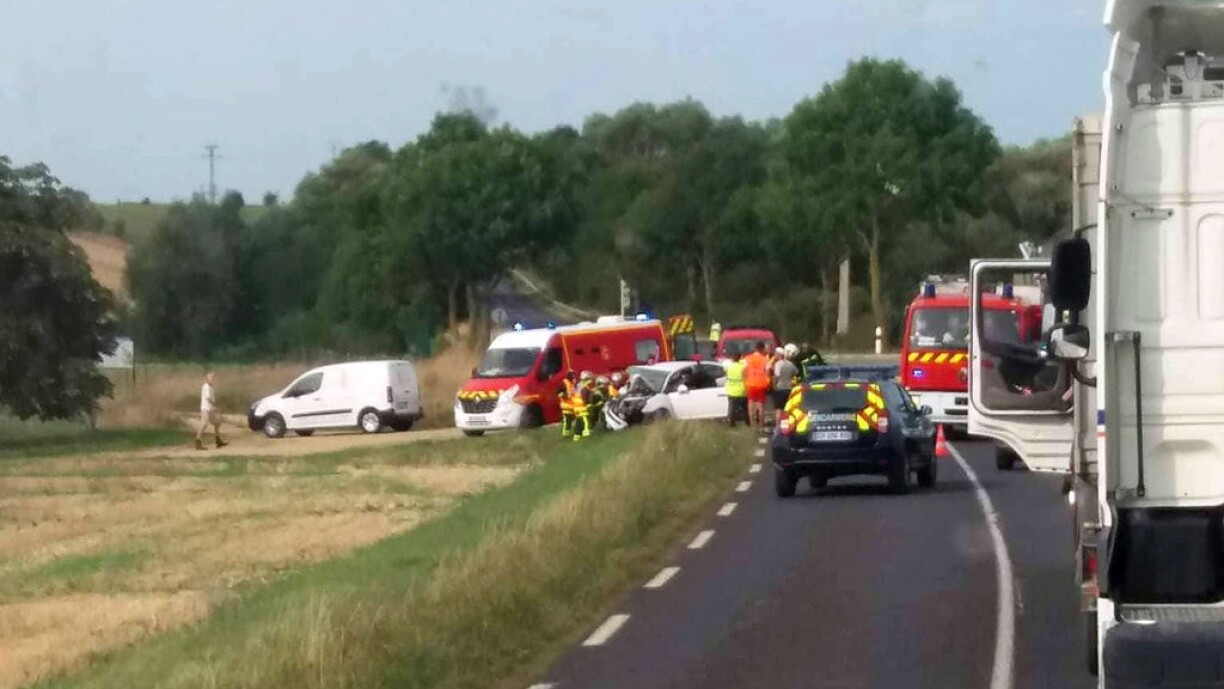 Les deux véhicules ont été projetés dans le champs jouxtant la départementale. La circulation est coupée dans les deux sens pour permettre aux secours d’aider les victimes.