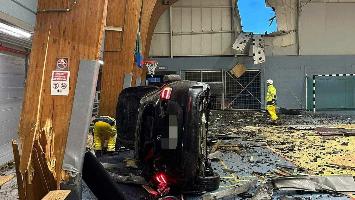 Les circonstances de l’accident restent encore floues mais on sait, grâce à des images de vidéosurveillance, que la voiture impliquée a fait un vol plané qui l’a menée tout droit dans un gymnase.