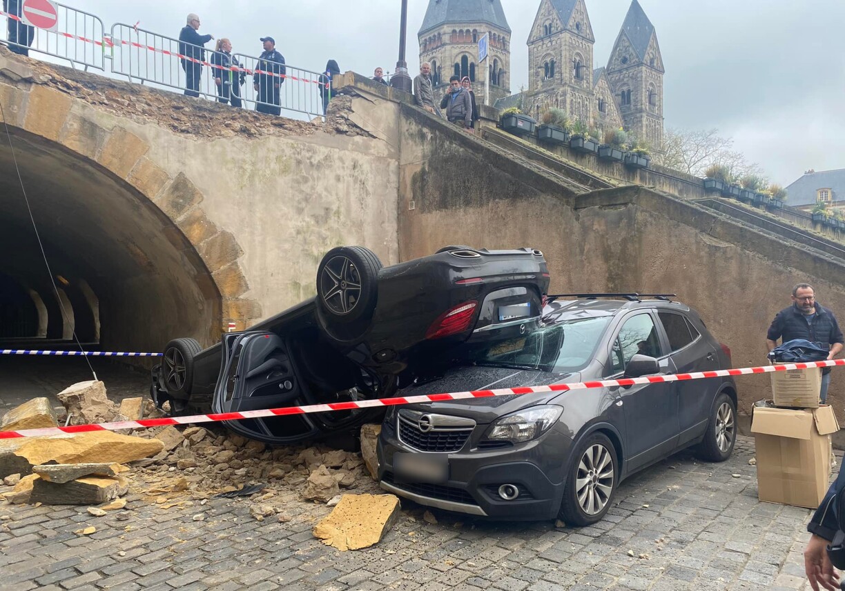 L’accident est sans grande gravité mais les images sont spectaculaires. Ce lundi, une voiture a détruit le muret du pont des Roches, au centre-ville de Metz, avant de retomber sur le toit, environ 5 mètres plus bas, sur la petite place où était stationné un autre véhicule. Selon le Républicain Lorrain, le conducteur de 70 ans et un piéton de 27 ans ne sont que légèrement blessés. Fort heureusement, car l’accident aurait pu être bien plus grave...