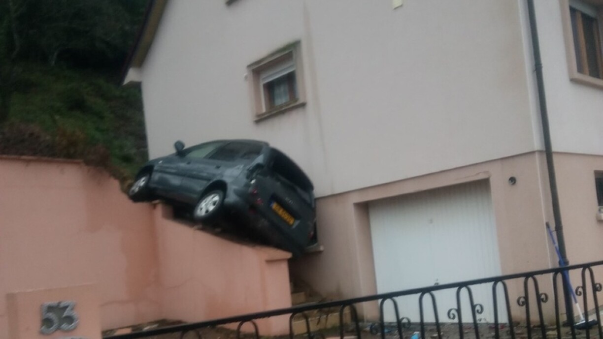 La témoin, auteure de cette photo insolite, nous a indiqué qu’il n’y avait pas eu de blessé. Elle a ajouté que le véhicule était immatriculé au Luxembourg et que sa chute avait, forcément, fait des dégâts sur la maison.
