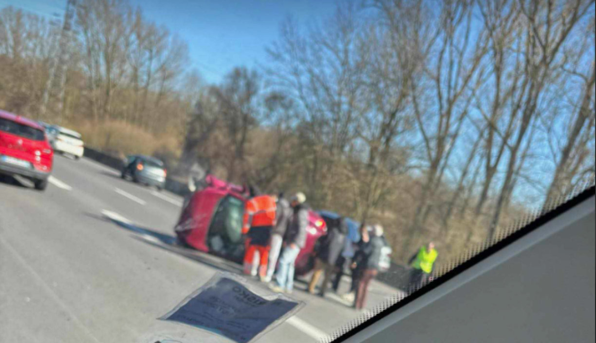 Pour des raisons indéterminées, une voiture s’est retrouvée sur le flanc au beau milieu de la chaussée de l’A31 à une centaine de mètres à peine an aval du triangle de la Fensch où se séparent l’A31 et l’A30.