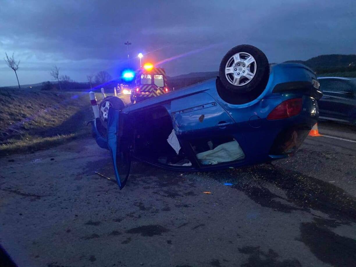 L’accident aurait eu lieu un peu avant 7h sur la route reliant Kanfen à Zoufftgen (RD56). La voiture est sortie de la route et a fini sur le toit dans des circonstances qui restent à déterminer.
