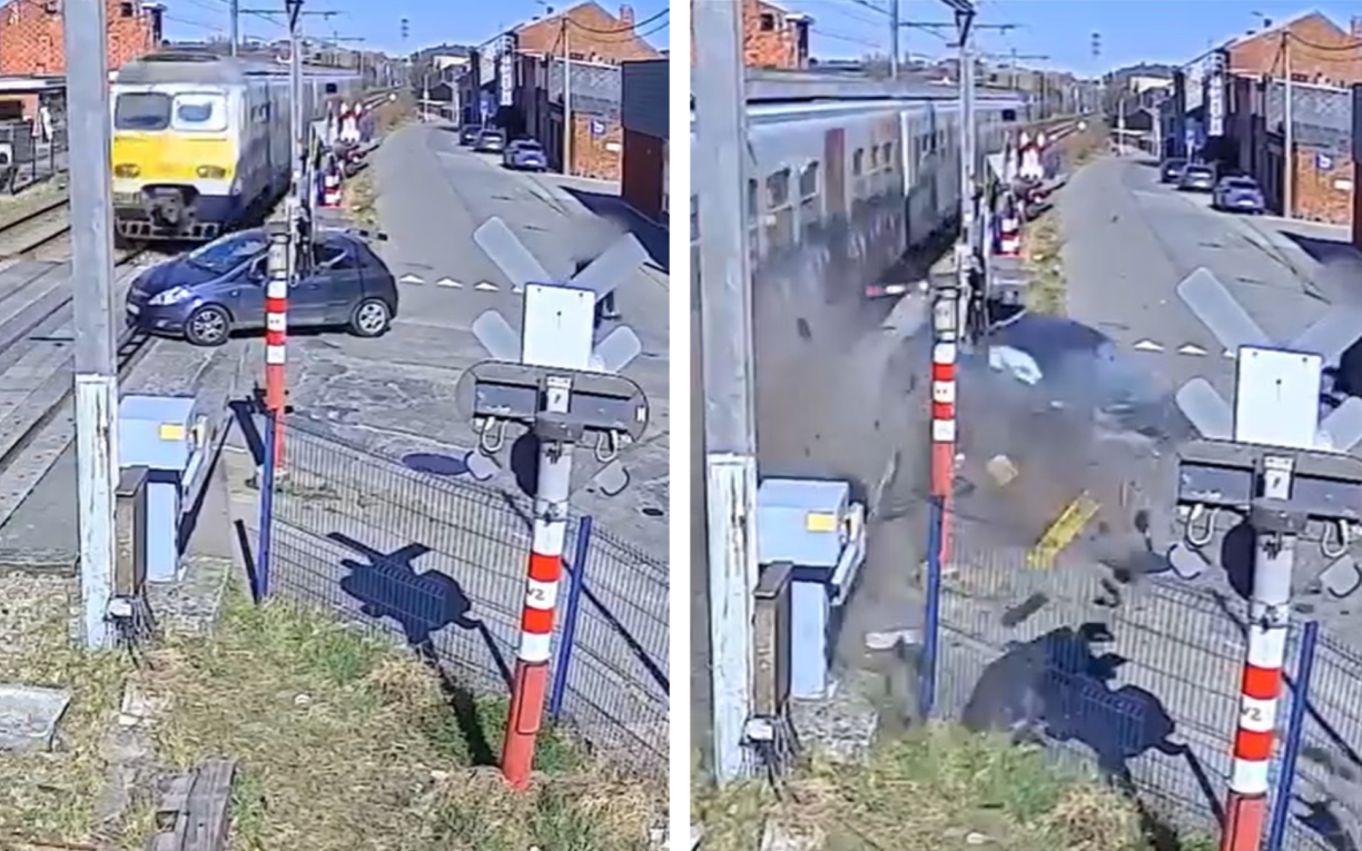 Ses caméras de surveillance ont filmé un accident à Liège, où deux automobilistes se sont engagés sur un passage à niveau au moment où les barrières descendaient.