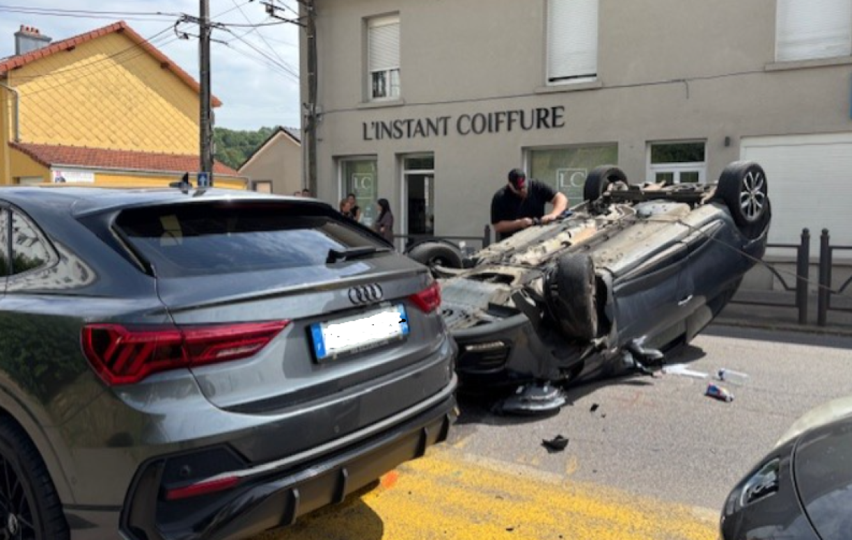 Le spectaculaire accident s’est produit ce vendredi peu avant midi dans l’avenue du Luxembourg à Herserange, à deux pas de la frontière. Une jeune femme a violemment percuté une voiture stationnée sur le côté et a fini sa course sur le toit. Elle s’en est sortie légèrement blessée.