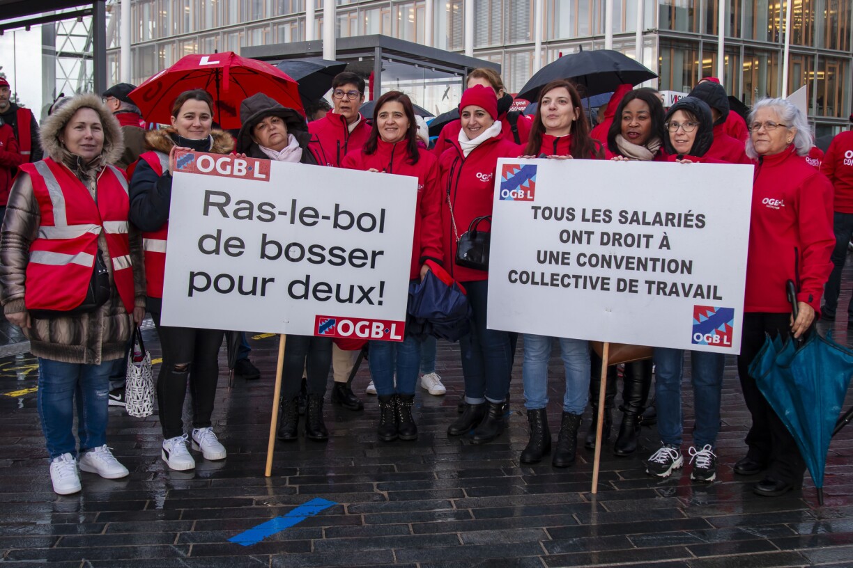 Le piquet de protestation organisé mercredi par l’OGBL devant la Banque européenne d’investissement (BEI) au Kirchberg, montre la détermination des salariés de la restauration collective pour une vraie reconnaissance de leur engagement quotidien. C’est sous une pluie battante et après une journée de travail démarrée très tôt souvent, que les agents de service, commis de cuisine et chefs de rang qui travaillent dans les cantines d’entreprises, d’institutions européennes, d’écoles, de crèches et d’hôpitaux sont venus réclamer à leurs employeurs un 13e mois de salaire “pour vivre décemment” et mettre fin à ce qu’ils vivent comme de “l’esclavage moderne”.