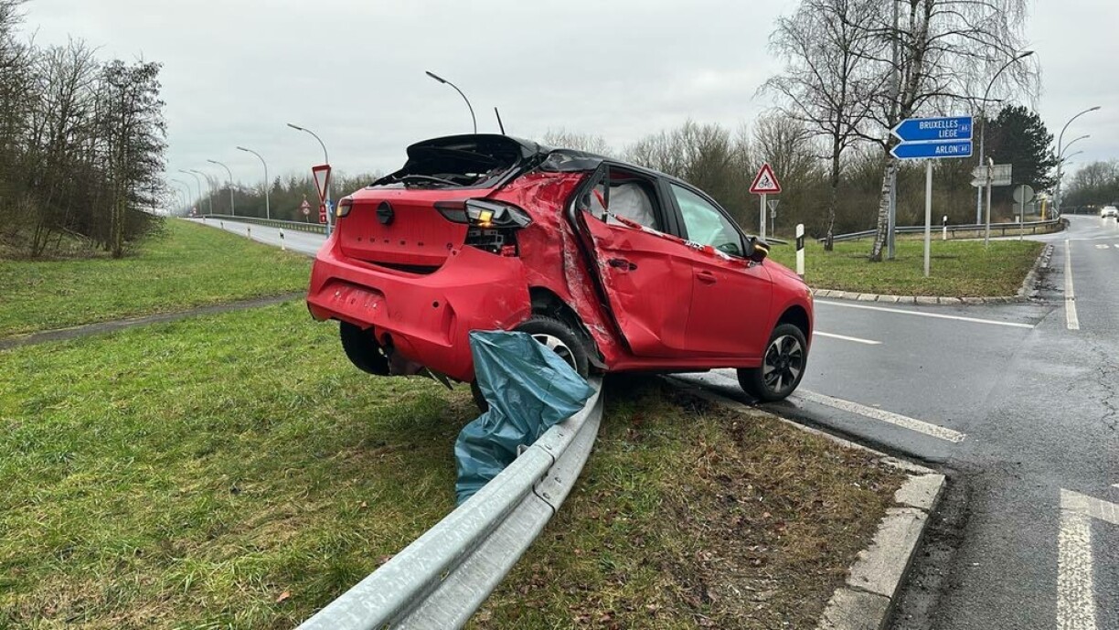 La voiture a subi d'importants dégâts et s'est retrouvée sur les barrières de sécurité. À l'arrivée de notre photographe, le bus avait déjà été remorqué.
