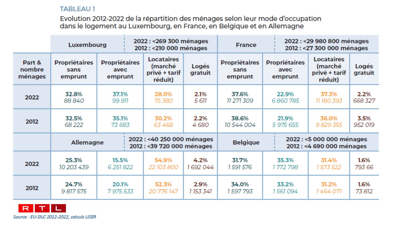 On apprend ainsi, par exemple, qu’au Luxembourg, en 2022, les ménages luxembourgeois dépensent en moyenne entre 32,5 et 35% de leurs revenus pour leur logement. Et, malgré une hausse générale du niveau de vie, ce taux d’efforta augmenté de manière significative depuis 2012, aussi bien pour les propriétaires que les locataires.