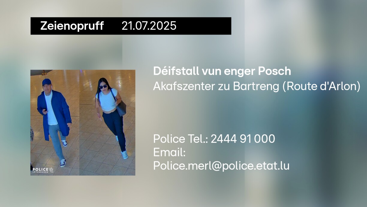 Suite à un vol de sac à main survenu le lundi 21 juillet 2025 dans un centre commercial situé Route d’Arlon à Bartringen, la police sollicite l’aide du public pour identifier les personnes photographiées.