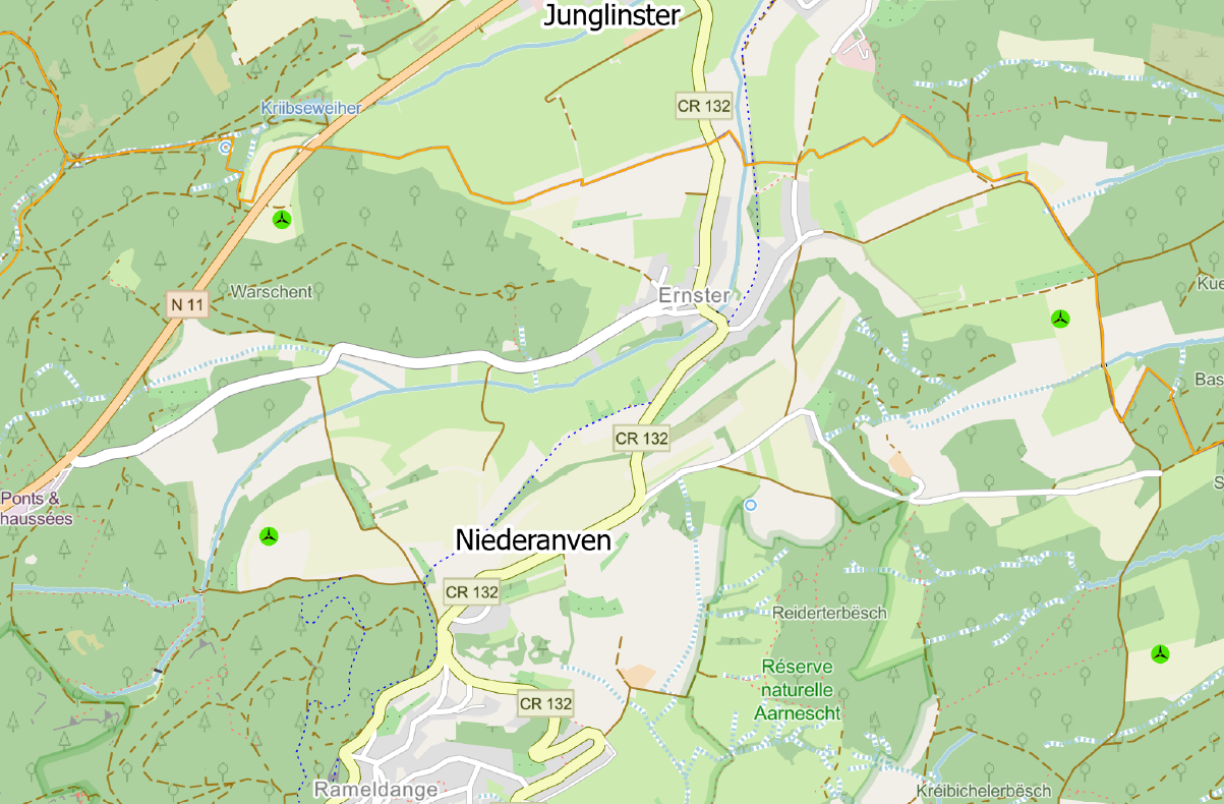 Quatre éoliennes seront bientôt implantées à Niederanven, notamment derrière la réserve naturelle "Op der Aarnescht" et à proximité de la route d'Echternach, après Ernster.