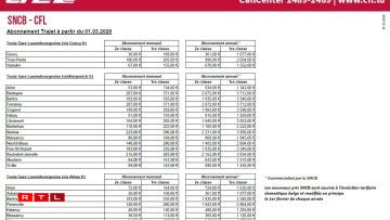 À partir du 1er mars 2020, le prix d’un billet simple de deux heures pour une destination de la RegioZone 1 reculera de 5€ à 3€. Le billet valable pour une journée baisse de 9€ à 5€, tandis que l’abonnement mensuel recule de 85€ à 40€. L’abonnement annuel s’établit à 360€, contre 750€ auparavant.
