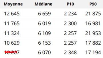 Le même calcul a été effectué pour les quatre communes restantes. Il faut noter qu’elles affichent toutes des salaires moyens supérieurs à 10.000 euros et des salaires médians au dessus de la barre des 6.000 euros. Ce sont donc des communes où de une bonne partie des résidents gagnent bien leur vie.