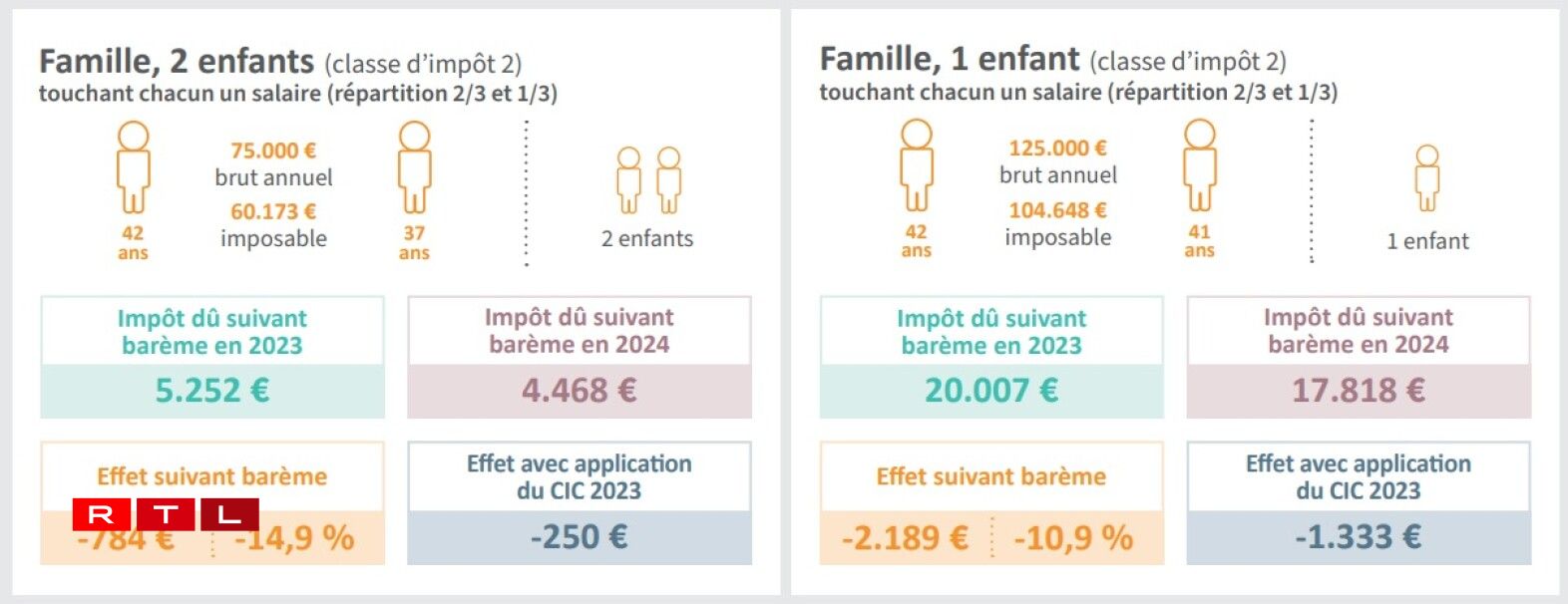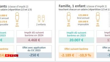 Pour une famille avec deux enfants et touchant 75.000€ par an, le gain sera de 784€ par an. Soit un peu moins de 66€ par mois.