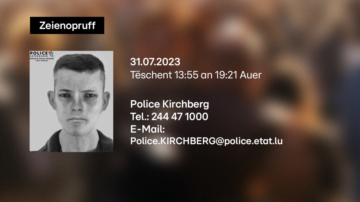 Si vous avez des informations sur cette personne, vous êtes prié de contacter la police au numéro (+352) 244 47 1000 ou par mail surPolice.KIRCHBERG@police.etat.lu