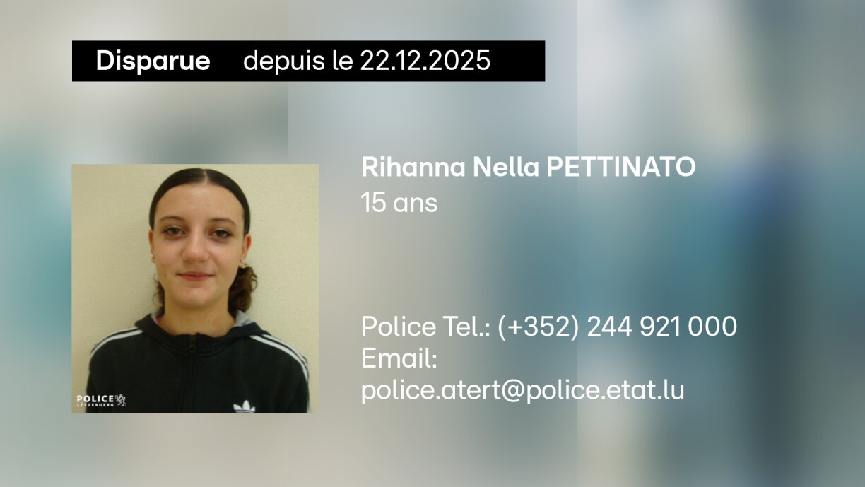 Toute information concernant le lieu où elle pourrait se trouver doit être communiquée au commissariat de police d’Atert par téléphone au (+352) 244 921 000 ou par e-mail à police.atert@police.etat.lu.