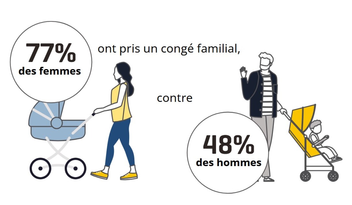 Le constat s'étend aux diverses interruptions de travail (pour assurer la garde d'un enfant ou la prise en charge d'un proche) : 61% des femmes ont dû s'adapter, alors que moins de la moitié des hommes a fait évoluer sa situation professionnelle pour cette raison (45%).
