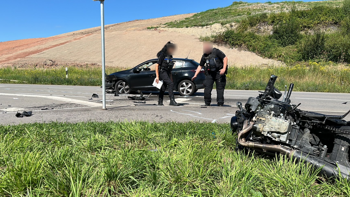 Les images témoignent de la violence du choc. Une voiture et un deux-roues sont entrés en collision lundi, vers 13h40, sur la CR106 à Mondercange. La moto a été "coupée" en deux.