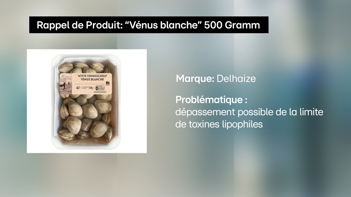 Delhaize Luxembourg a décidé de retirer le produit “Vénus blanche” (500g) de sa propre marque de la vente et de le rappeler auprès des consommateurs en raison d’un dépassement possible de la limite de toxines lipophiles.