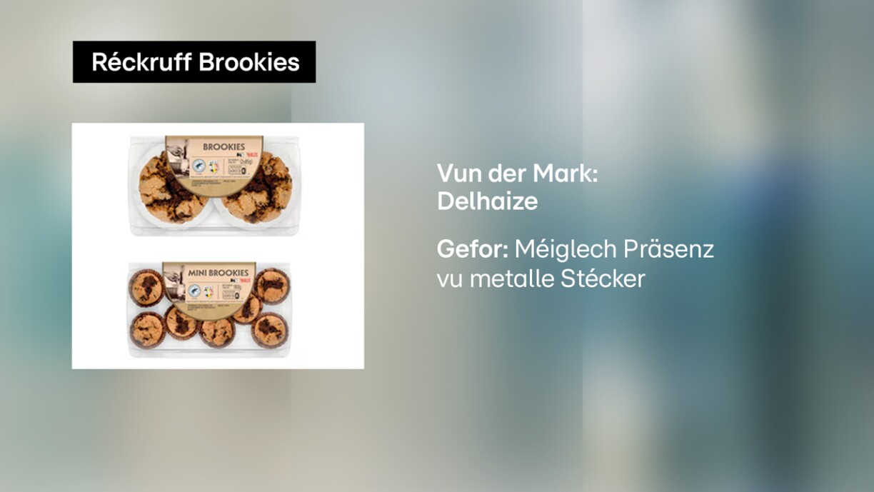 Les produits concernés sont les Brookies et les Mini-Brookies de marque Delhaize, présentant les caractéristiques suivantes: