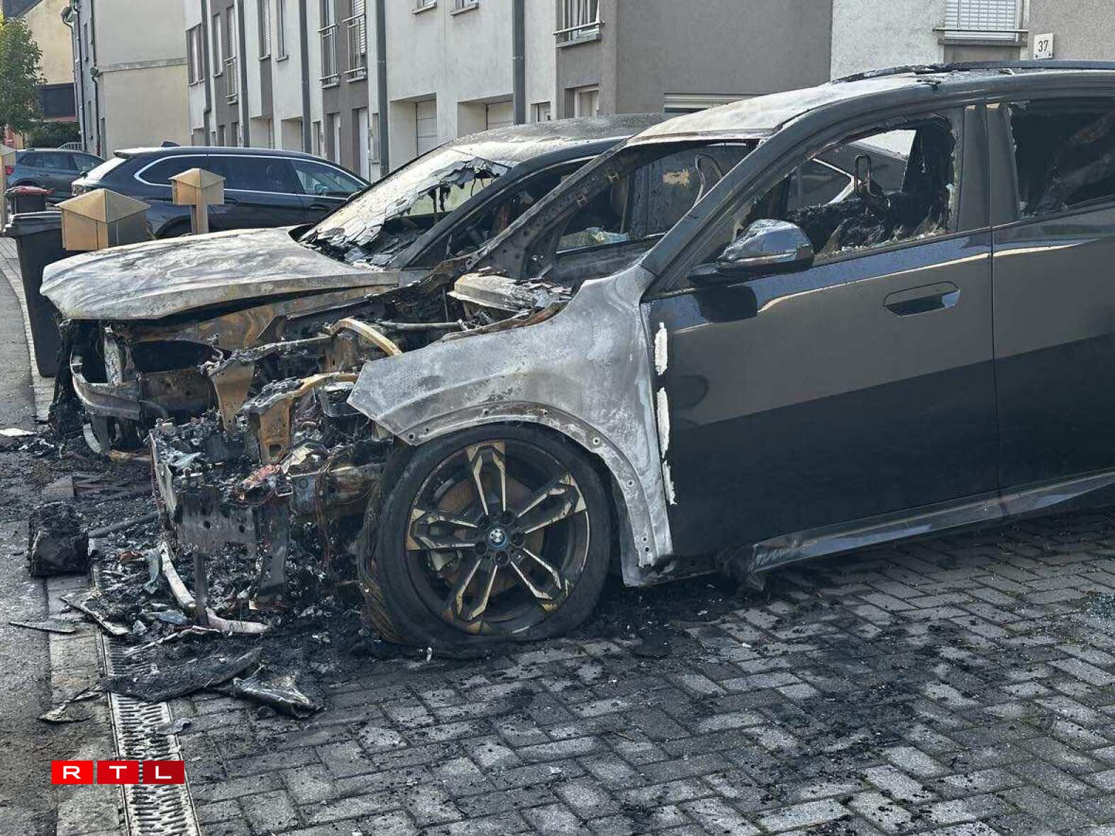 Les deux voitures qui ont brûlé cette nuit à Hesperange