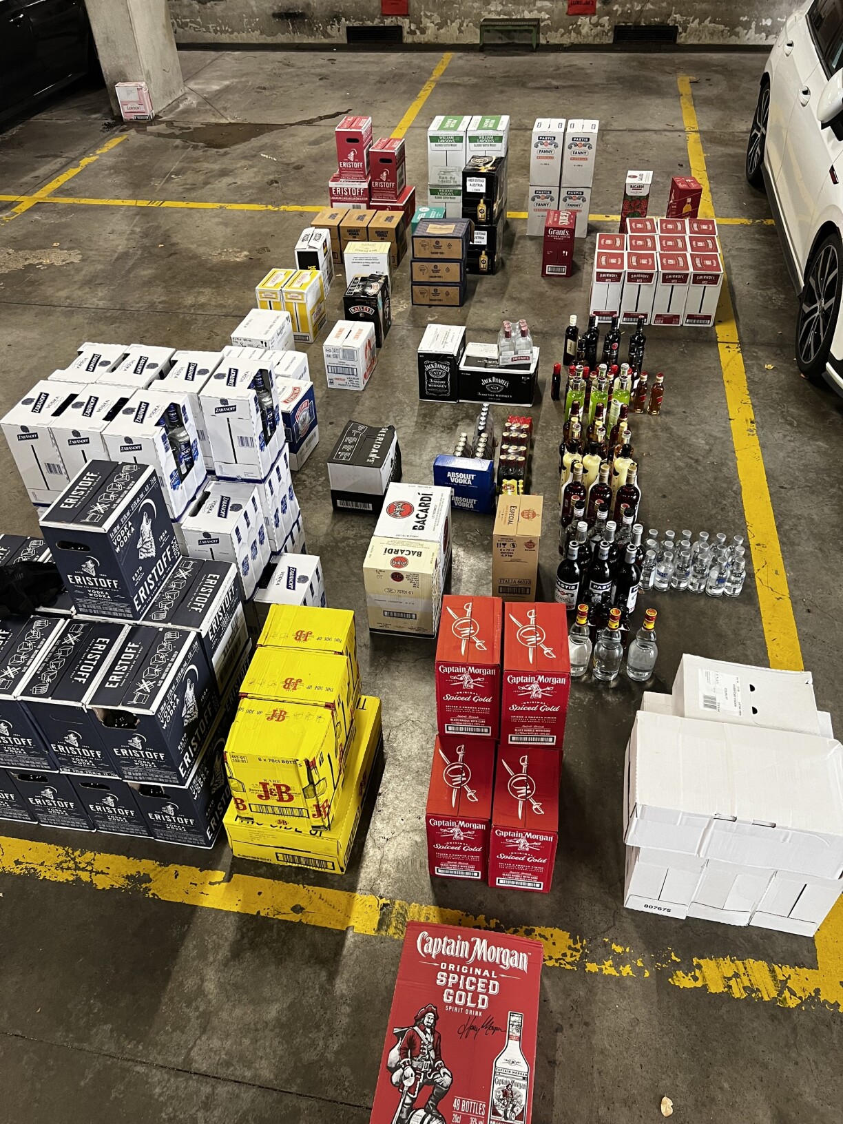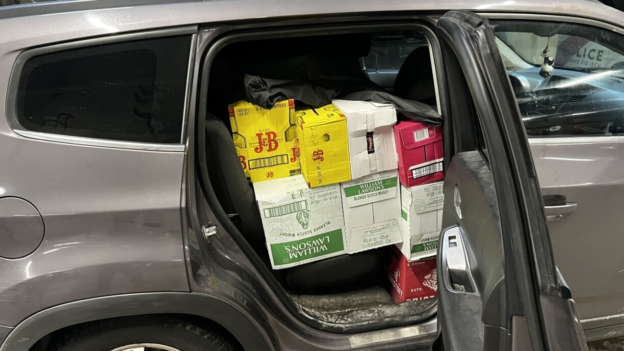 De plus, environ 125 caisses de bouteilles d’alcool ont été trouvées dans chacun des deux véhicules, soit environ 250 caisses au total.