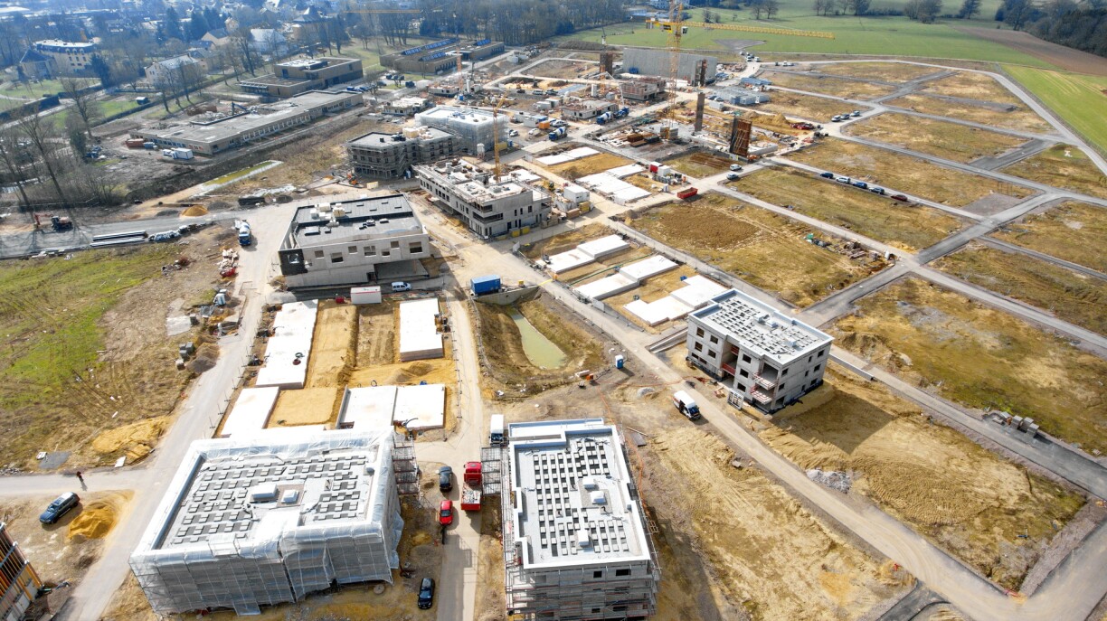 L’idée de départ était bien d’achever les éléments de la place centrale, dont la nouvelle école et la crèche calibrées pour 445 élèves, en même temps que les premiers logements. Mais ce ne sera pas le cas. La commune de Kehlen a pris beaucoup de retard dans le projet de construction de l’école.