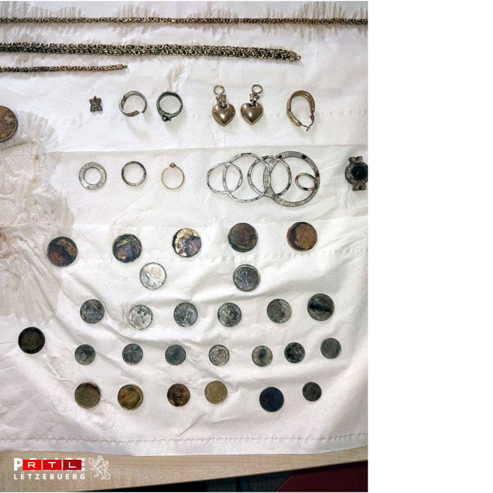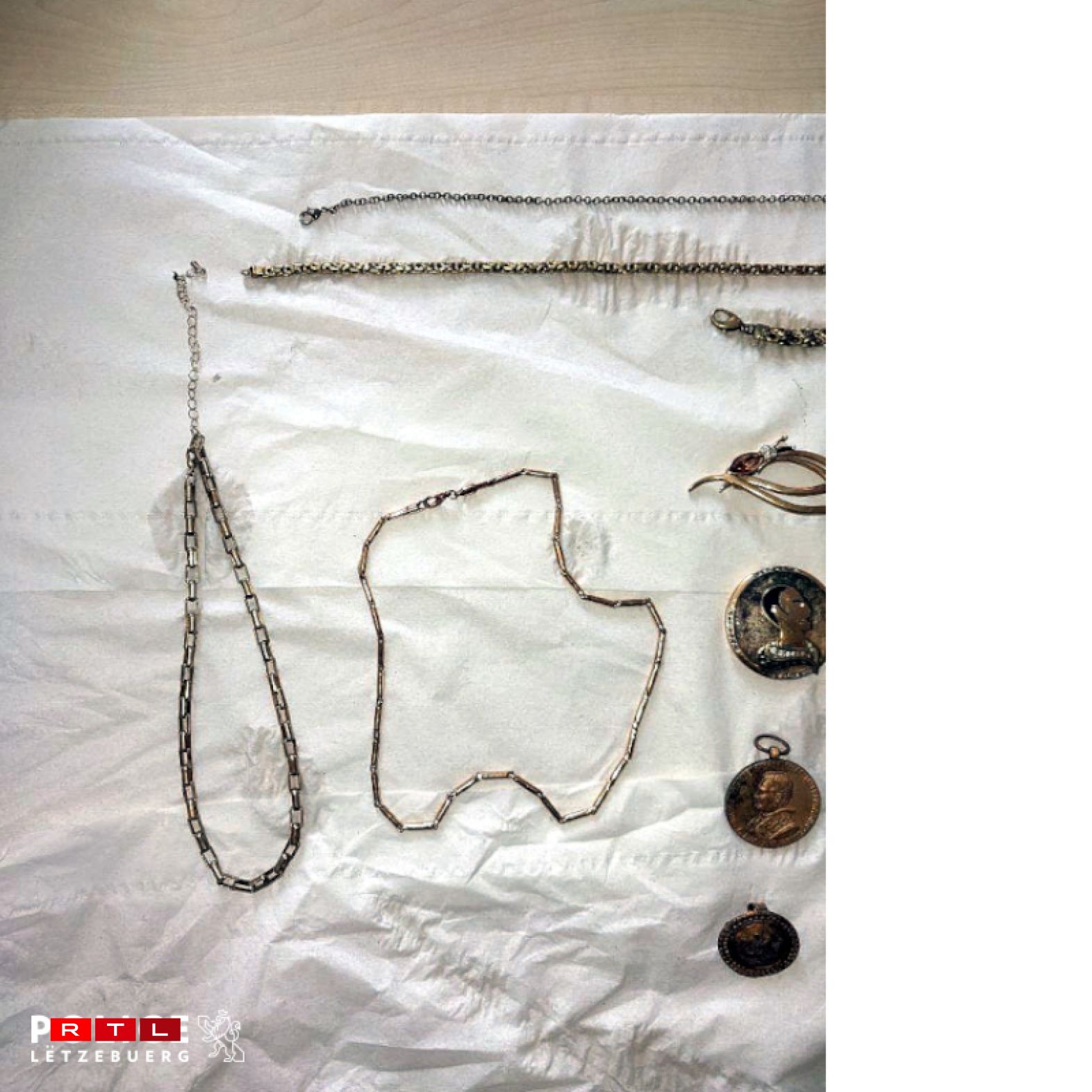 Parmi ces biens figurent notamment plusieurs montres anciennes en or, des chaînes et d’autres bijoux ainsi que des pièces de monnaie. Si quelqu’un reconnaît un des objets sur les photos suivantes, il est prié de contacter le commissariat de police Porte du Sud par téléphone au numéro (+352) 244 57 1000 ou par mail à l’adresse police.portedusud@police.etat.lu.