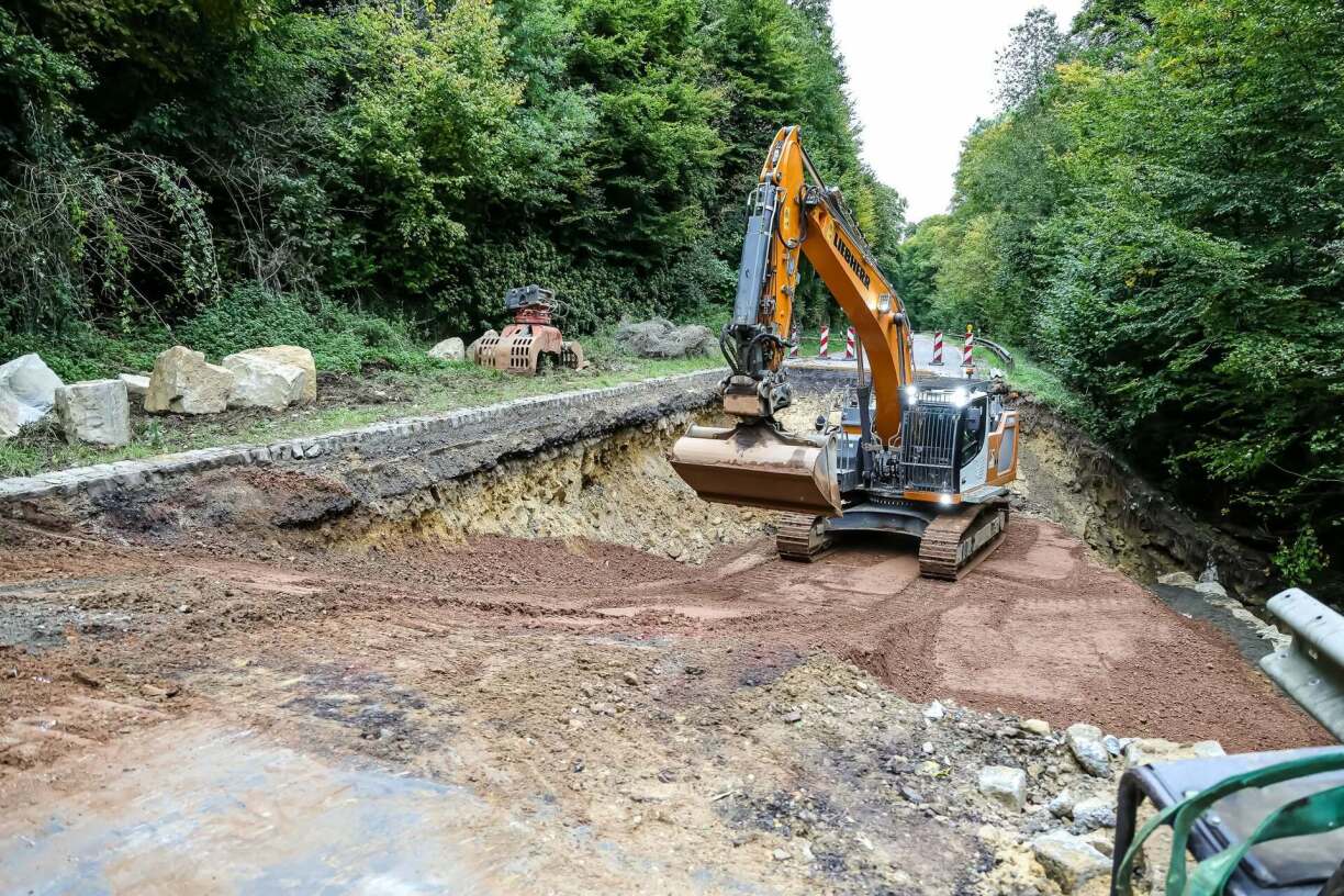 La route est inaccessible depuis les fortes pluies survenues dans la nuit du 8 au 9 septembre dernier. Les eaux de ruissellement avaient alors emporté une partie du sol sous la chaussée, provoquant l’affaissement d’un tronçon. Les Ponts et Chaussées mènent actuellement des travaux de réfection pour rétablir la sécurité de cet axe, essentiel pour les communes de Mersch et Fischbach.