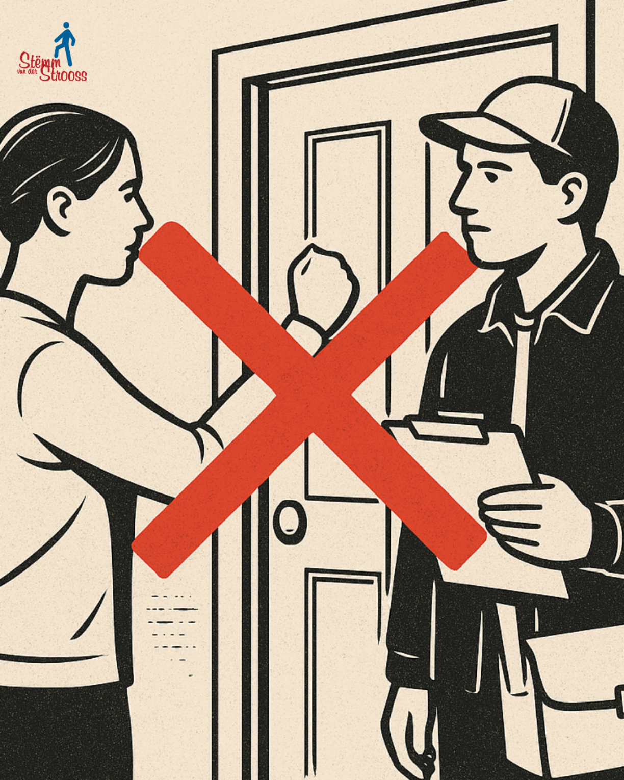 Si une personne se présente chez vous pour solliciter un don au profit de la Stëmm vun der Strooss, ne remettez rien et contactez immédiatement la police.