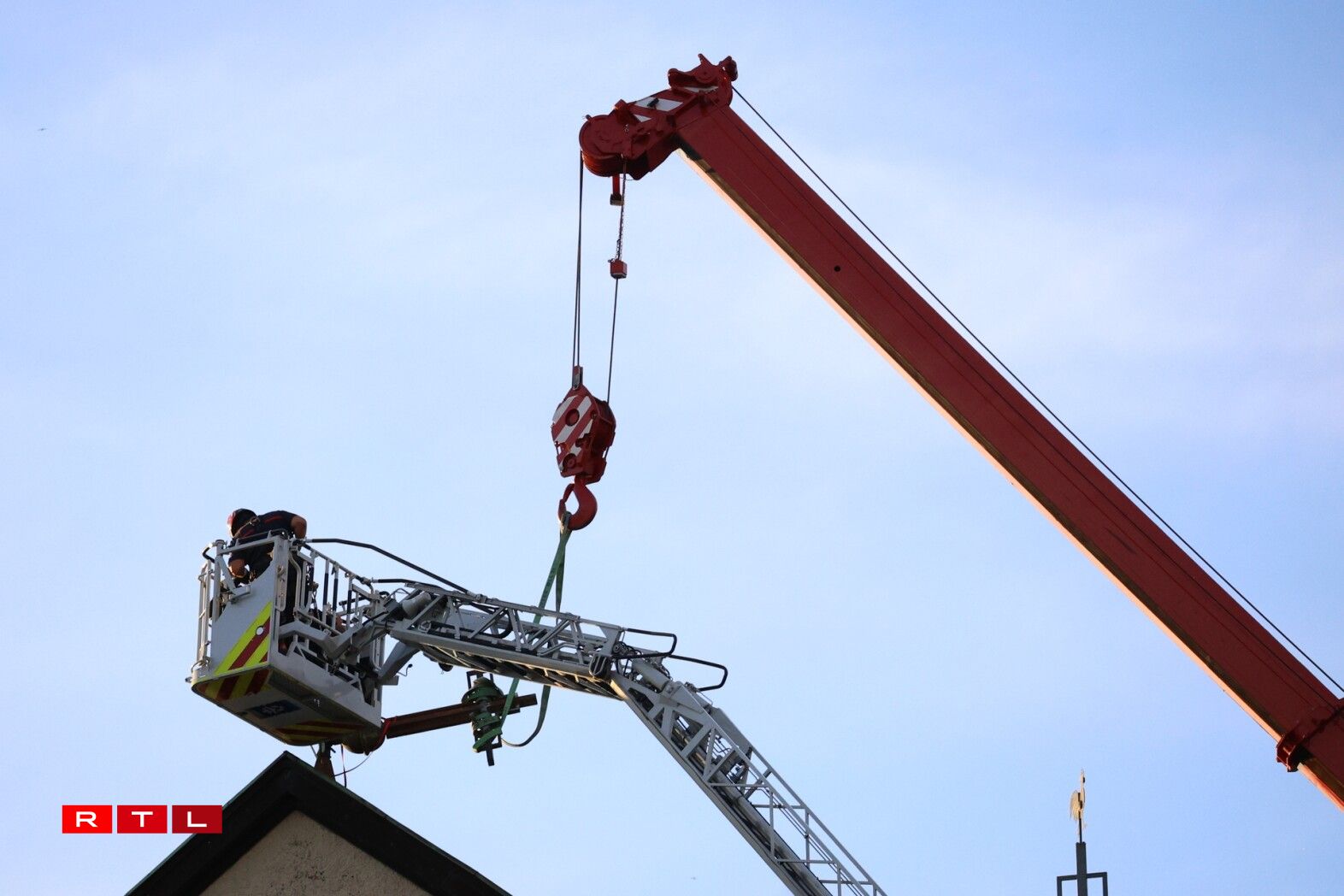 L’orage de dimanche après-midi a également suscité l’émoi à Esch-Lallange. Là aussi, la croix, qui pèse près de 150 kilos, s’est détachée du clocher de l’église. L’opération étant encore plus compliquée qu’à Bivange en raison de la hauteur et du poids de la croix, les pompiers de Lintgen ont été appelés en renfort.