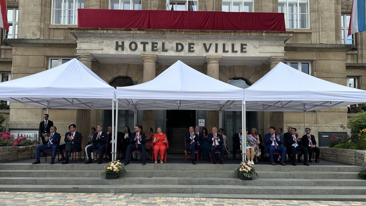 Il a ensuite défilé à travers la rue marchande la plus longue du pays avant de déposer des fleurs devant le Monument aux Morts du musée de la Résistance. Alors que le cortège passait par le rue de l'Alzette, le prince Guillaume et sa femme Stéphanie ont pris le temps de s'entretenir avec les citoyens et citoyennes sur place. Cela jusqu'à ce qu'ils aient à prendre leur place dans les tribunes.