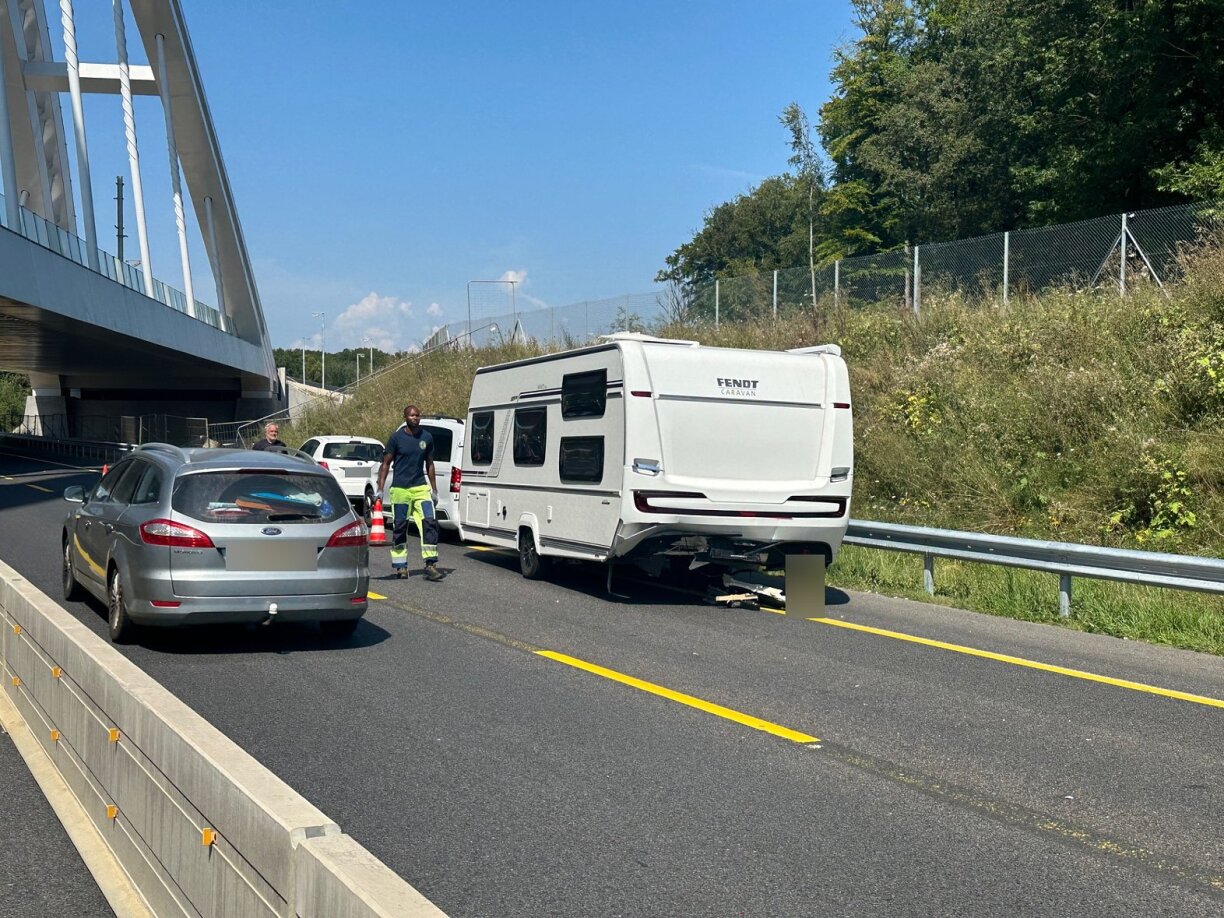 La voie de droite est toujours bloquée et un gros bouchon s'est formé. Outre une camionnette, une caravane et deux voitures sont également impliquées dans l'accident.