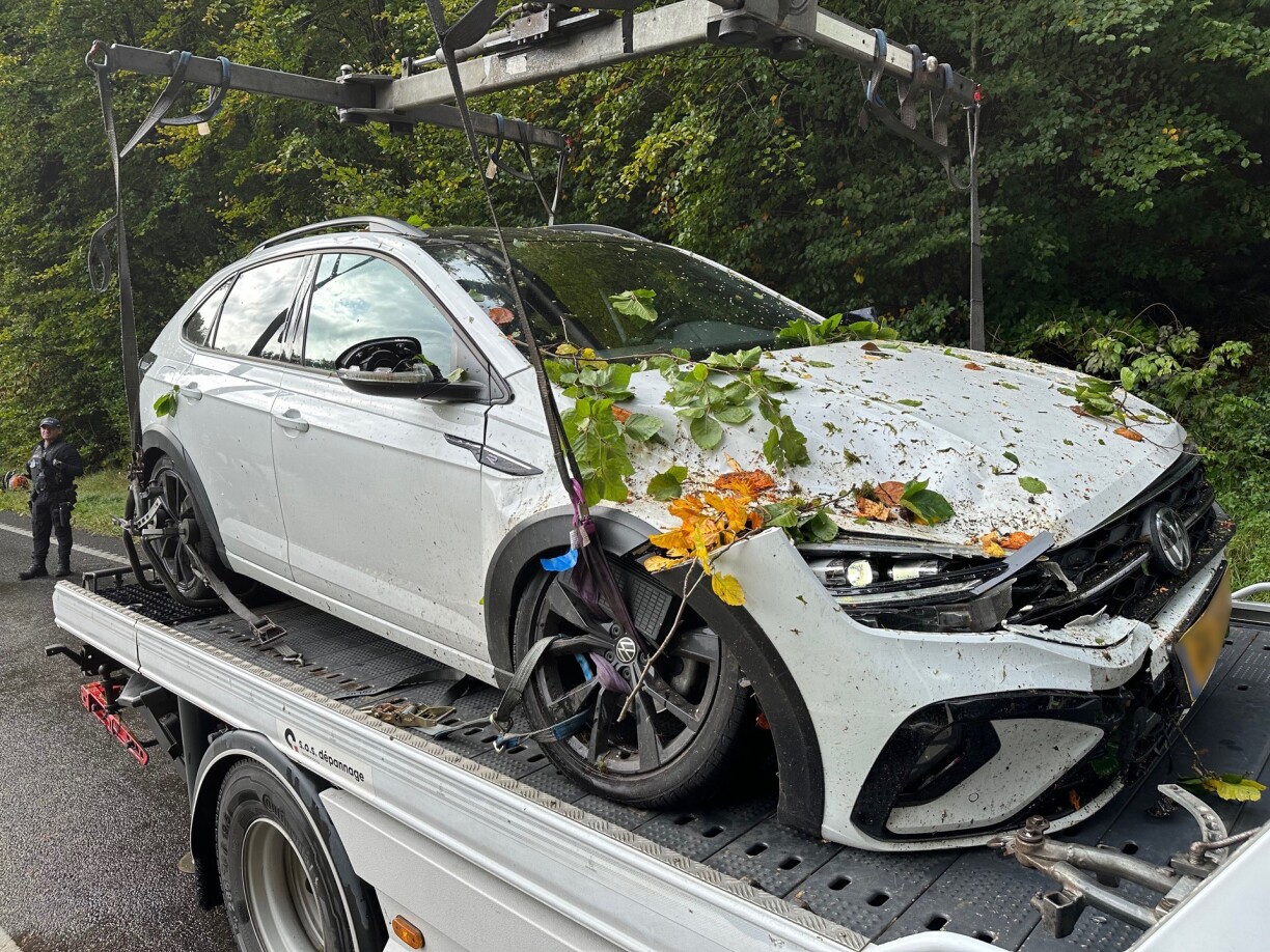 L'automobiliste circulait sur le CR192 entre Schoenfels et Merschaux alentours de 13h00 quand un gros arbre s'est subitement penché vers la route pour tomber sur sa voiture! Par chance, l'énorme tronc a seulement légèrement touché la voiture.