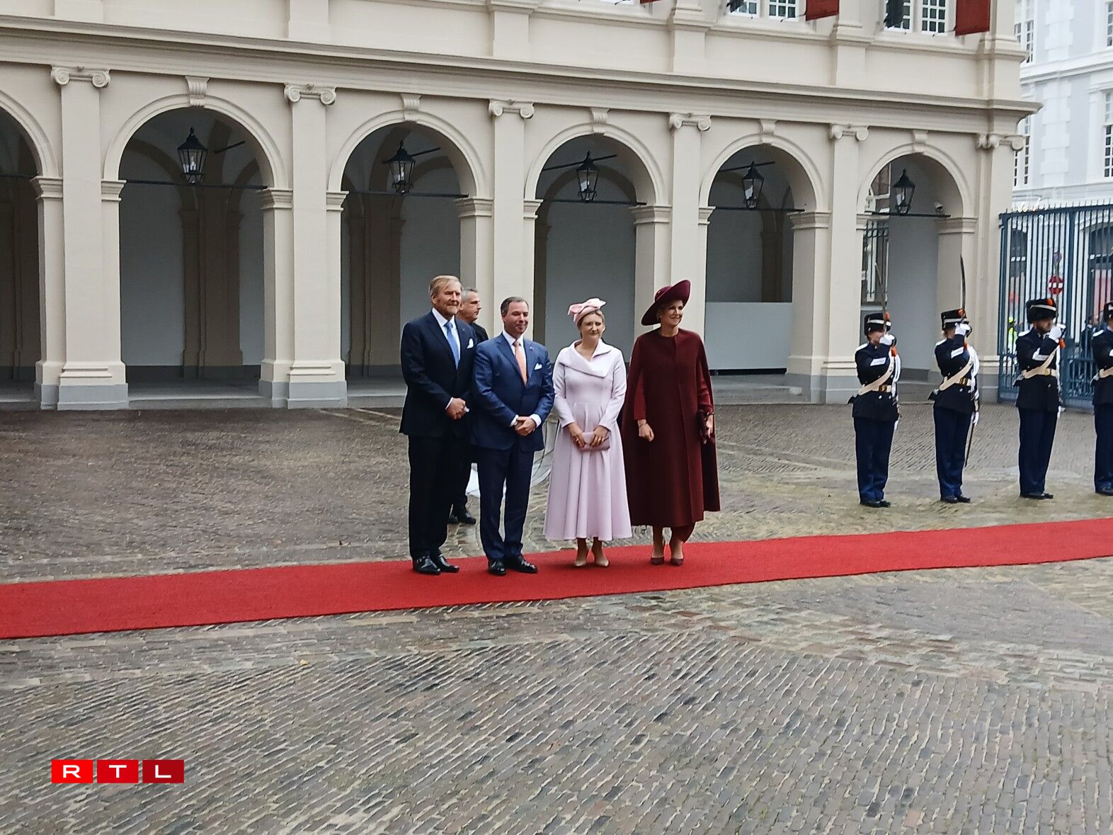 Le premier point à l’ordre du jour de la visite du couple grand-ducal fut donc une audience auprès du couple royal néerlandais. Vers 9h, le chef de l’État luxembourgeois et son épouse ont été reçus au palais Huis ten Bosch